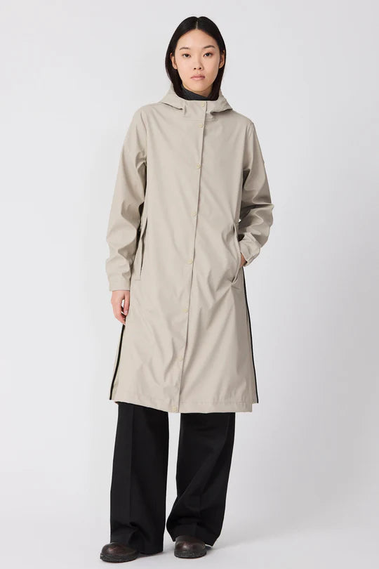 The Tempête is an ever-contemporary, 100% waterproof long raincoat with an A-line silhouette. Crafted from iconic PU fabric, it features fully taped seams for superior protection against the elements.