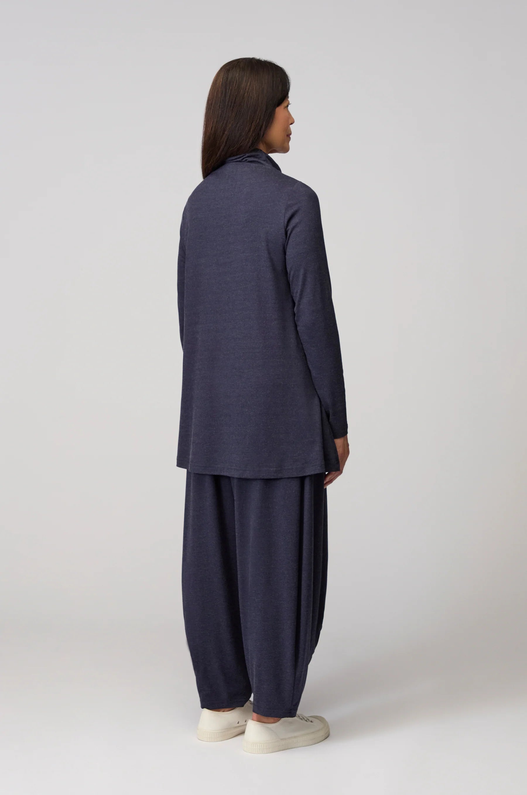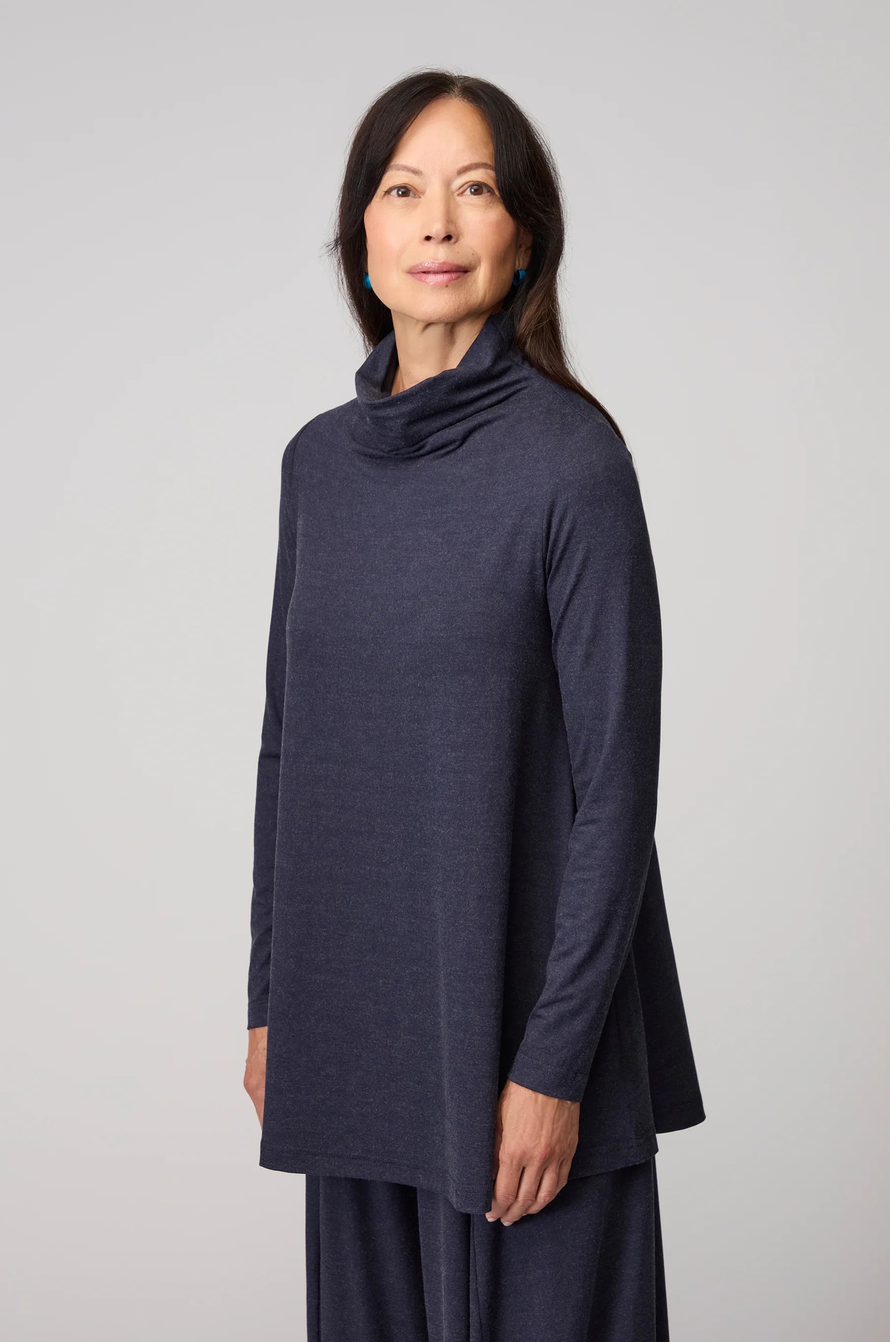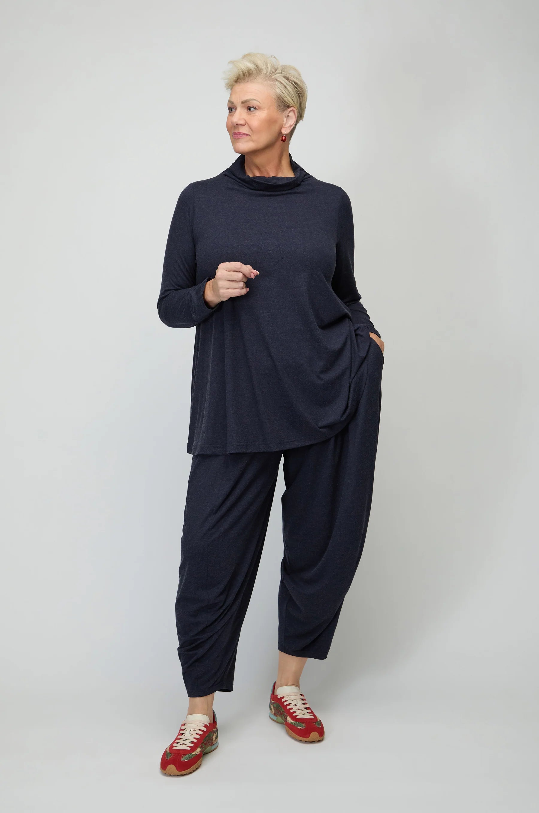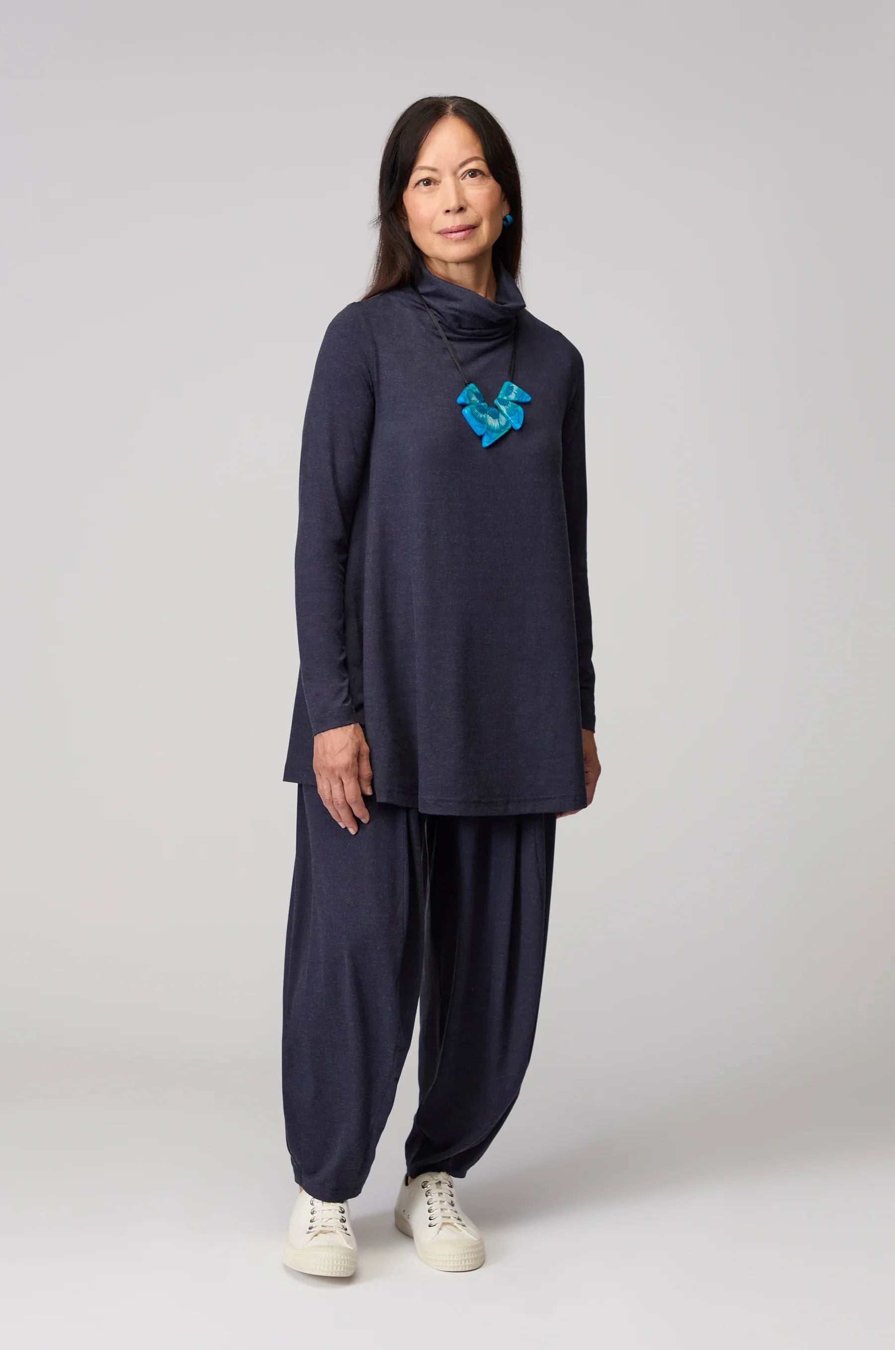 The Sahara Soft Viscose Jersey Roll Neck Top is a timeless layering staple, made from smooth viscose jersey and cut in a relaxed, boxy shape. The grown-on roll neck falls softly for an easy, draped effect, while the rich Night shade adds to its versatility—an ideal foundation piece for a curated wardrobe.