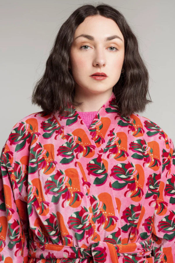 Les Touristes Long Kimono Velvet - Split Pink