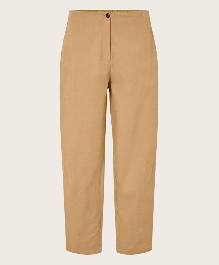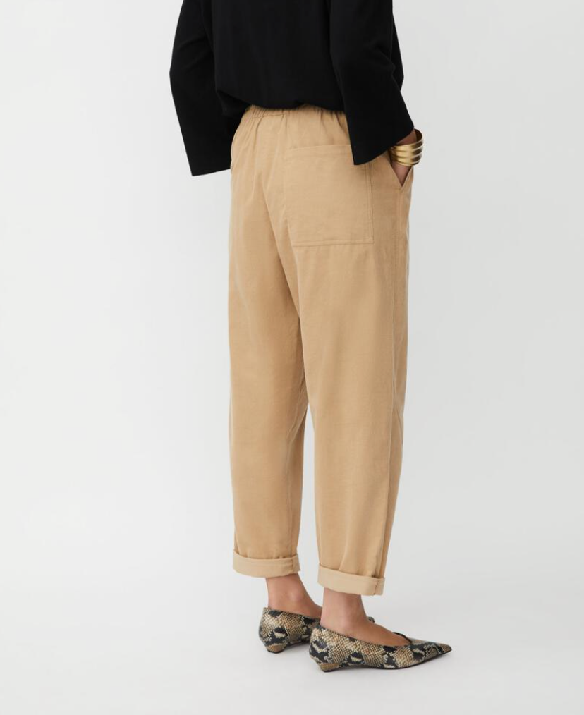 Combining comfort and modern style, these corduroy trousers are crafted from soft, lightweight fabric that feels warm and cosy against the skin. Designed with a relaxed fit and gently tapered leg, they create a flattering shape while allowing easy movement. An elasticated waistband at the back ensures all-day comfort and a perfect fit. Pair them with a chunky knit and ankle boots for an effortlessly chic everyday look.
